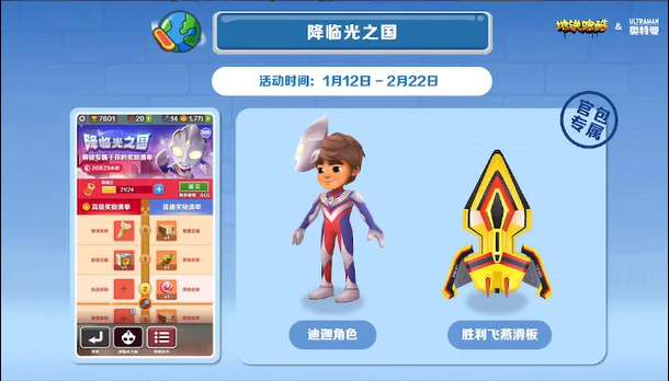 每日前往无尽模式赛道或通过完成任务收集「鞭炮」,就可解锁奥特曼联动限定形象「迪迦杰克」&「胜利飞燕」&「神光棒」