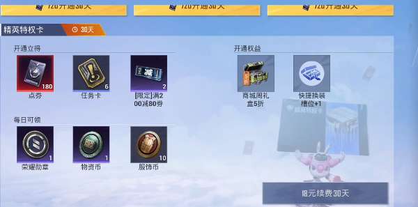 --特权卡每日奖励