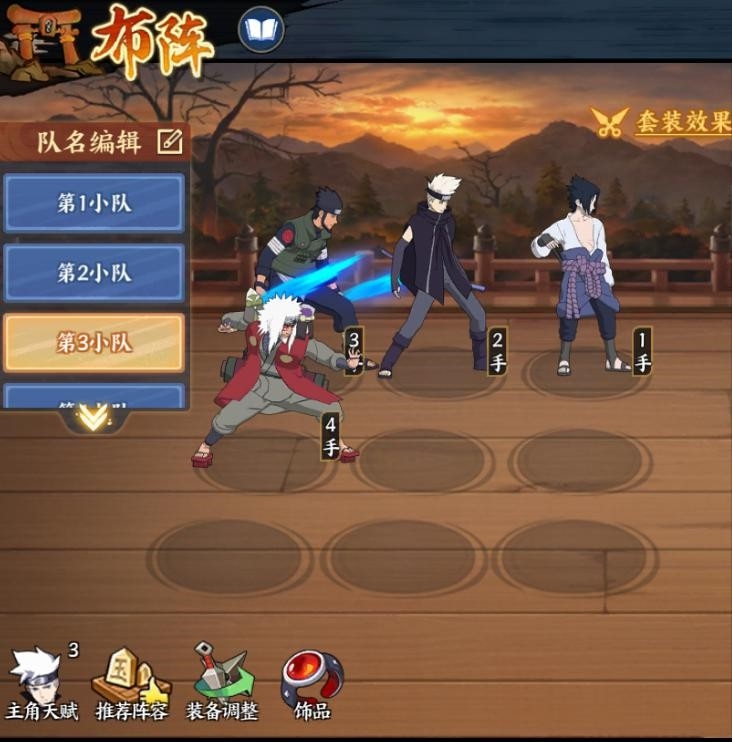 佐助【疾风传】具备了足够的防御可抗性可以胜任一号位的连续打断定身,佐助的定身技能为必中有不错的战略意义。