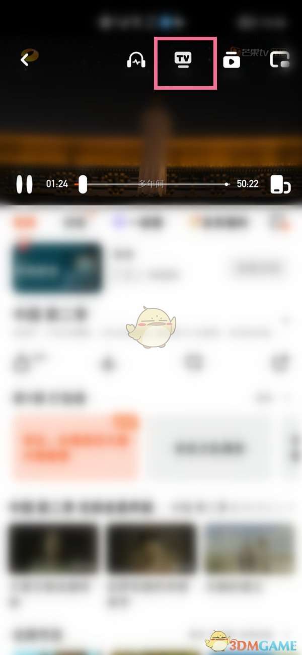 1、打开手机芒果TV,在视频播放界面点击【TV】投屏图标。