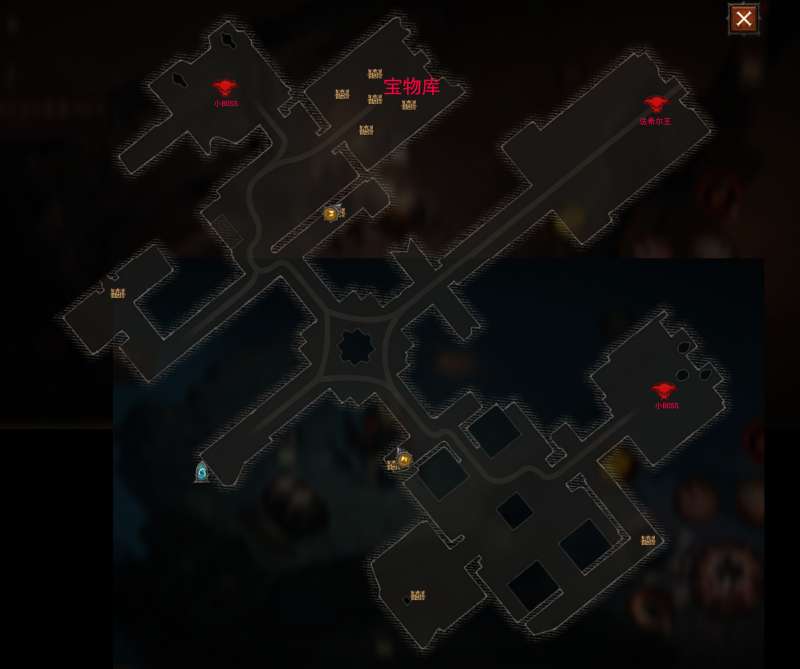 与前两个副本相比,法希尔之墓的地图非常大,需要玩家先分别前往击杀分别位于地图上下方的房间内的小BOSS,才能进正中间的通道迎战这作墓穴的主人——法希尔王。