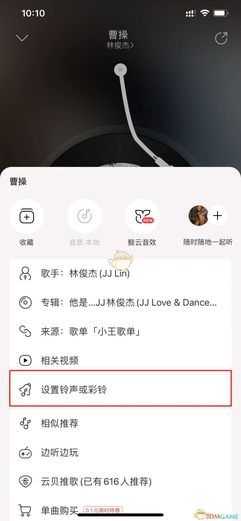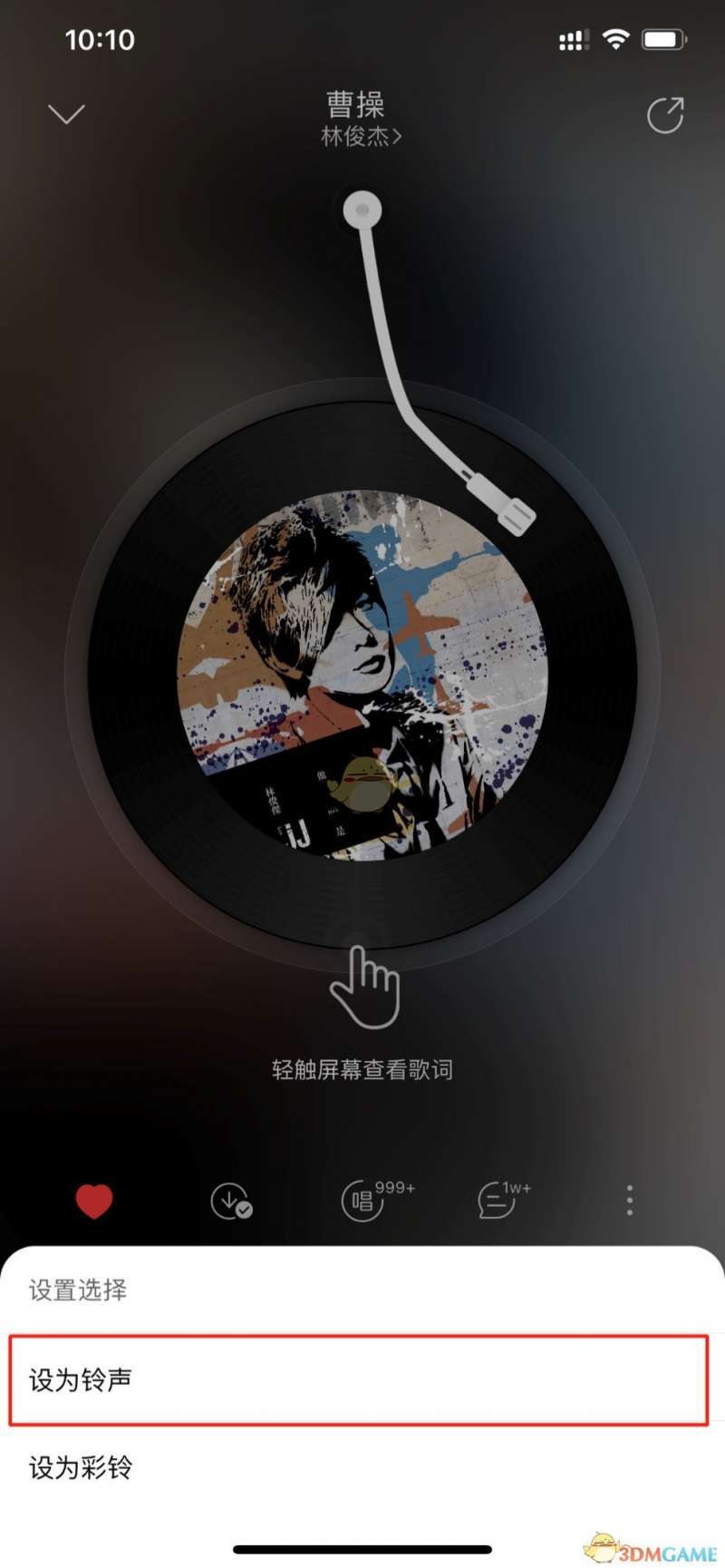 2、在播放界面中,点击三点图标,在展开的选项中,点击设置铃声或彩铃。