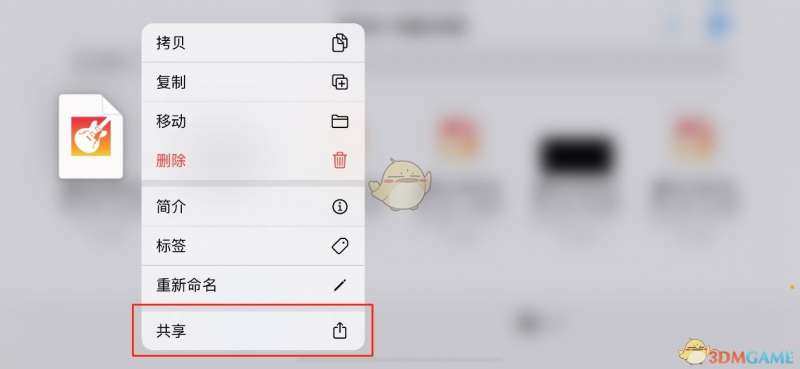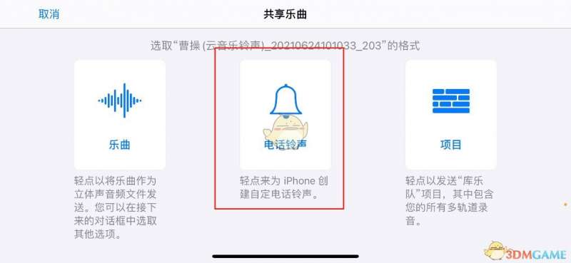 6、选择铃声并长按,在弹出的选项中,点击共享。