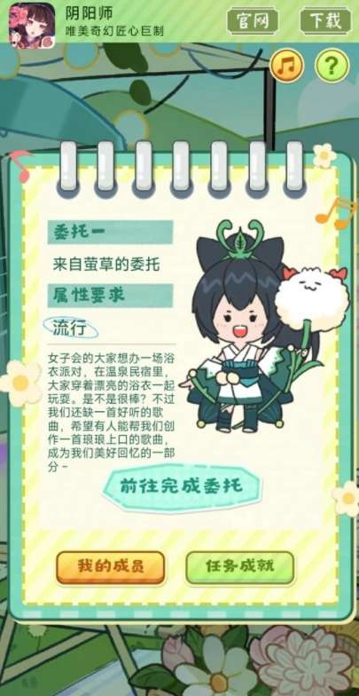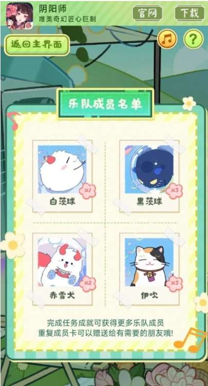 活动期间,大人将接受来自三位式神的音乐委托,根据曲目属性要求,选择合适的乐队成员演出,获得委托评价并收集更多乐队成员。