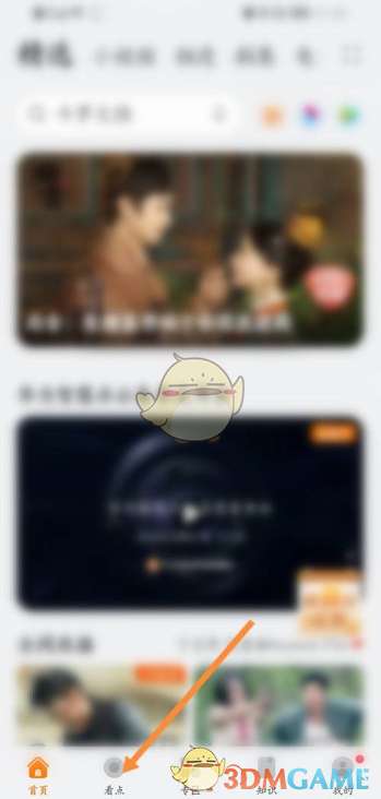 1、进入手机的华为视频,点击下面的看点选项。