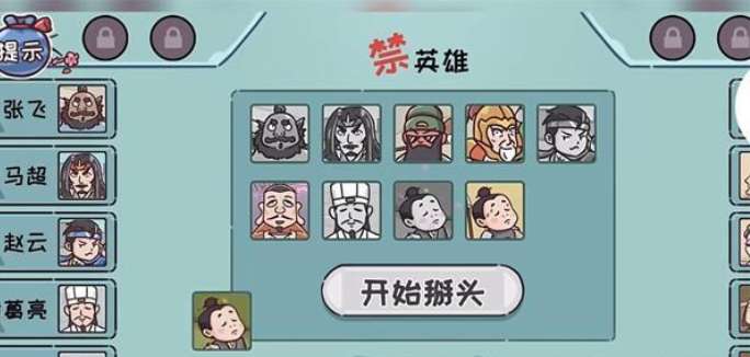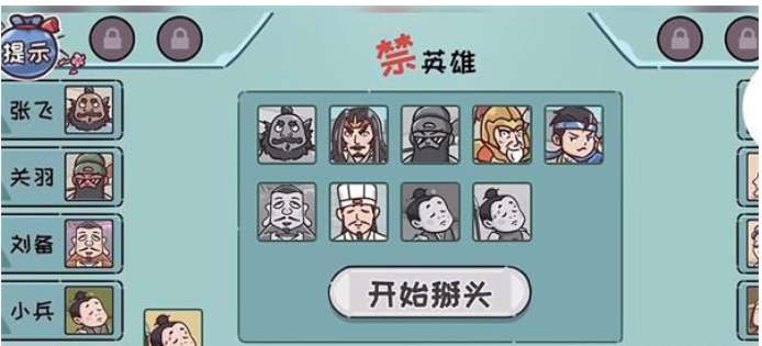1、点击三下禁字,解锁关羽,然后排出五虎上将