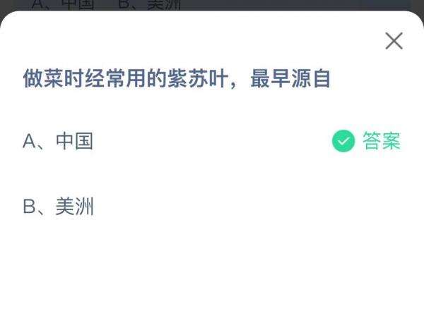 2022支付宝蚂蚁庄园7月29日的题目为:做菜时经常用的紫苏叶最早源自?中国还是美洲?很多小伙伴可能还不太清楚正确答案是什么。下面小编就为大家带来了正确答案分享,感兴趣的小伙伴们快一起来看看吧!