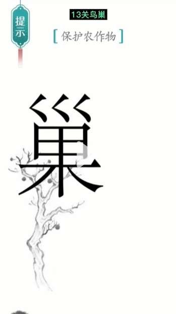 抖音小游戏汉字魔法是一款非常有趣的闯关游戏,游戏第十三关鸟巢的提示是保护农作物,这一关我们需要弄走鸟巢,保护好农作物。下面是十大评测小编给大家带来的《汉字魔法》第13关鸟巢通关攻略,感兴趣的小伙伴们一起来看看吧。