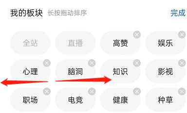 3、接着,长按板块还可以拖动先后排列顺序,点击完成即可。