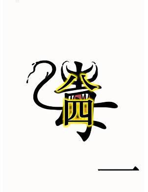 1、首先我们将【盆】从毒液头上砸下去,得到【八】【刀】【皿】。