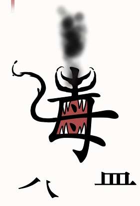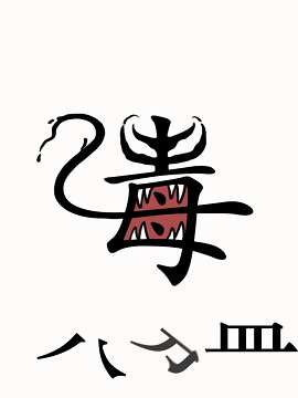 3、把【皿】拆成【四】和【一】,使用八四消毒液对付毒液就过关了。