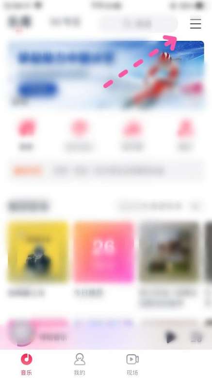 第二步:然后在咪咕音乐首页点击右上角三横线图标进入。