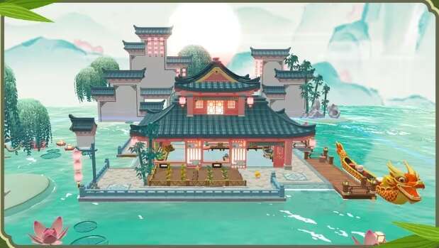厨房右侧为龙舟停靠区域,部分食材需要通过电话下单取货。蛋仔进入厨房内的电话亭后,即可线上挑选和订购所需食材!