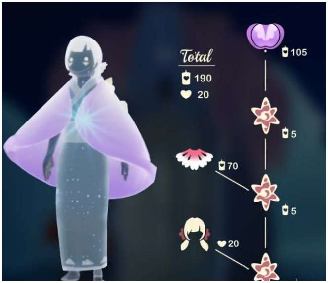 1、花憩节限定先祖兑换图如下:紫罗兰斗篷105蜡烛、樱花斗篷70蜡烛、樱花发型20爱心;