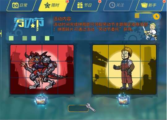 打工人辛苦了!五一假期回馈新老用户,活动期间玩家可以通过完成“劳动节委托”获取拼图碎片,完成拼图即可领取劳动节限定主题皮肤“里斯-劳动骑士”“钢爪-沸腾的机械”!