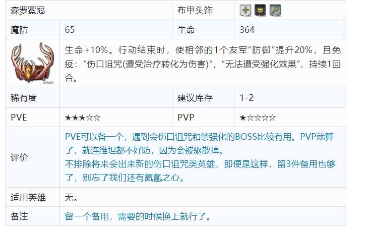 PVE可以备一个,遇到会伤口诅咒和禁强化的BOSS比较有用。