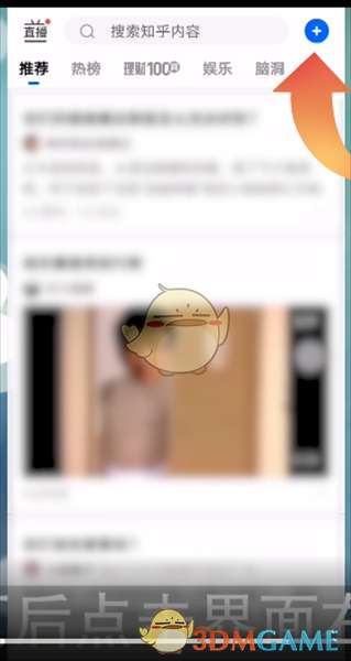 1、打开手机上的知乎APP,进入知乎首页后点击界面右上角的【+】。