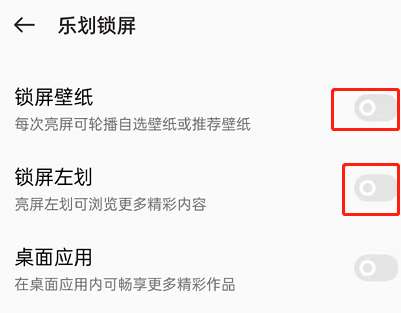 3、将锁屏壁纸、锁屏左划右侧开关关闭即可。