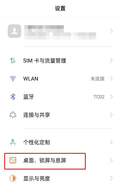 1、打开设置,点击进入桌面、锁屏与息屏。