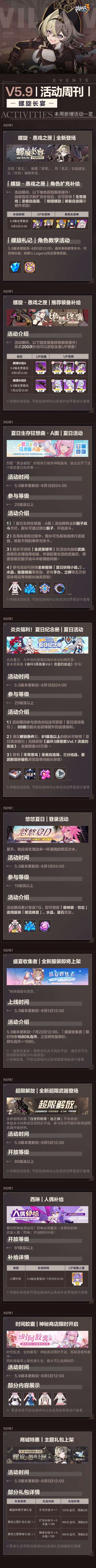 好啦~以上就是崩坏3螺旋长宴5.9版本维护通知&新活动预告的详情内容啦~怎么样,你期待吗?那就让我们新版本相见啦~