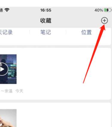 3、进入到收藏的界面后,点击右上角的【+】号键。