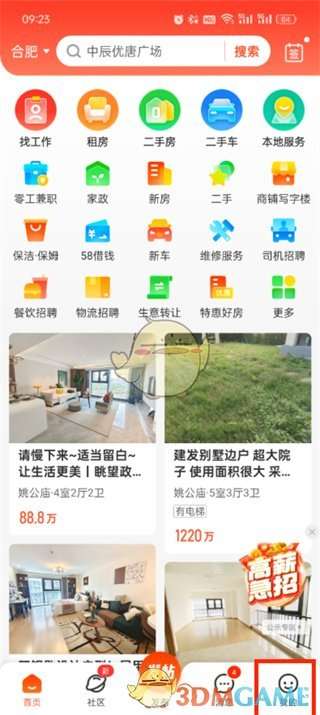 1、首先打开58同城软件,进入到首页中后可以切换到社区、发布、消息、我的页面中,在这里点击右下角的【我的】;