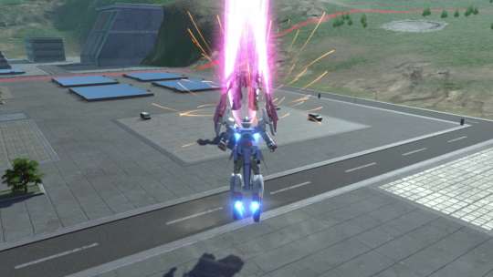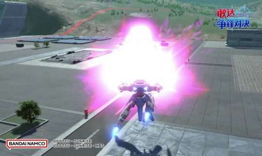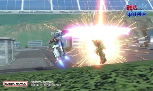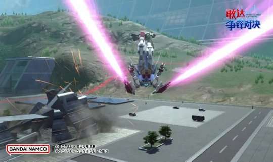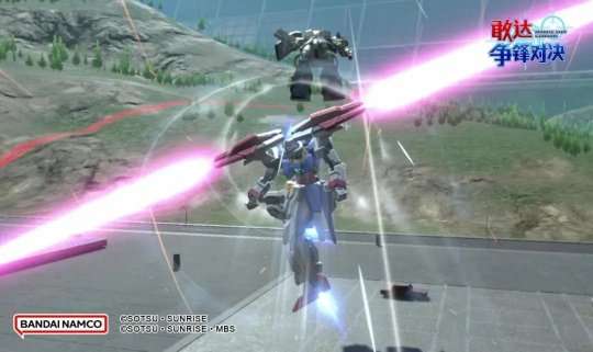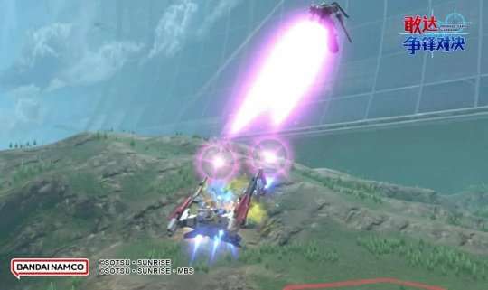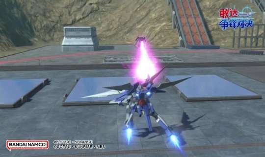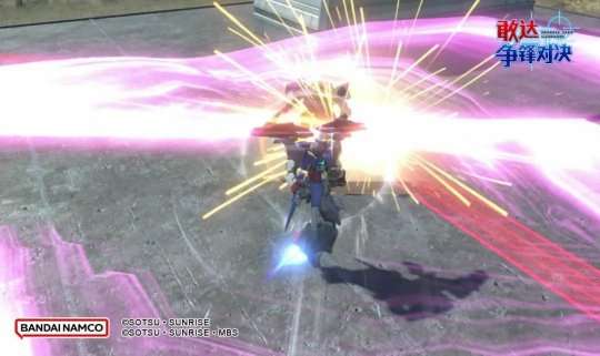 切换成双炮形态,之后向目标冲锋并挥舞大型光束剑连续斩击,命中后击飞目标。