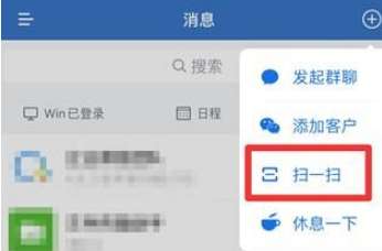打开企业微信,点击右上角加号图标。