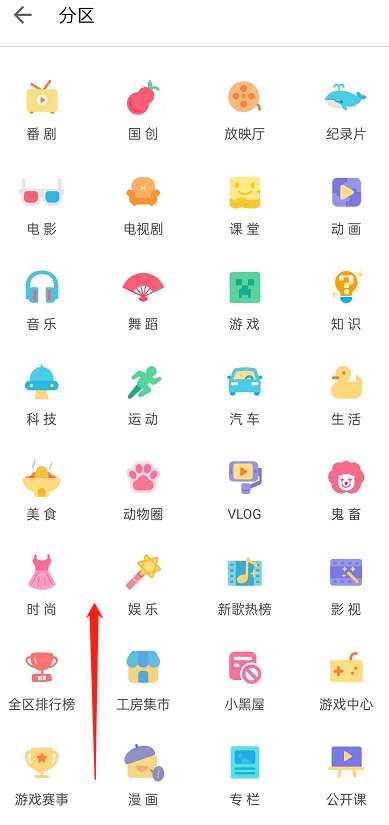 1、首先,打开哔哩哔哩,点击右上角分区图标。