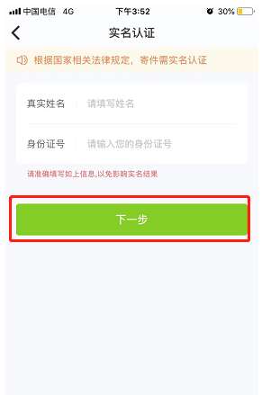 4,输入真实姓名和身份证号,点击【下一步】并按照指引即可完成