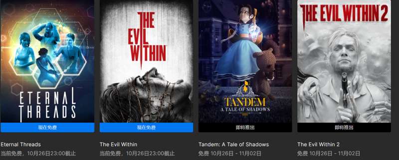 近日新消息,Epic游戏商城最新喜加二活动继续更新,玩家可以在商城中限时领取免费游戏,本次免费的游戏有《恶灵附身》和《无穷时线》,截止日期到10月26日23点。