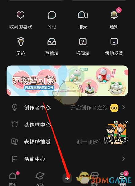 1、打开软件下方的加号,选择发布内容。