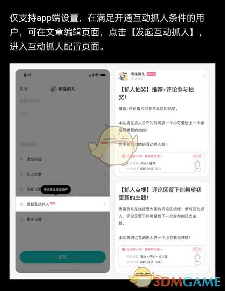 lofter为了增强用户和粉丝的活跃度,上线了互动抓人玩法,对于创作者来说,可以抽取对应的粉丝来完成一些设置。因为这个玩法刚上线不久,所以很多小伙伴可能还不太清楚具体该怎么玩。下面小编就为大家整理带来了lofter互动抓人玩法介绍,一起来看看吧!