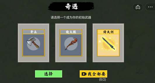 1、游戏刚开始的时候,选择倚天剑,这个需要看一个广告。