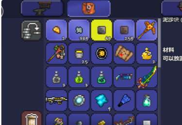 3.将两个材料体块,拖动到道具快捷使用栏中,这样我们就可以直接进行材料的使用,将使用体块锁定到材料体块上,将雪泥块或者泥沙块,直接移动放置到泰拉瑞亚物品提炼机左上角的螺旋柱上,即可开始使用泰拉瑞亚物品提炼机,泰拉瑞亚物品提炼机会弹出道具物品。