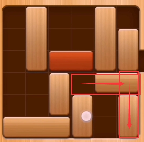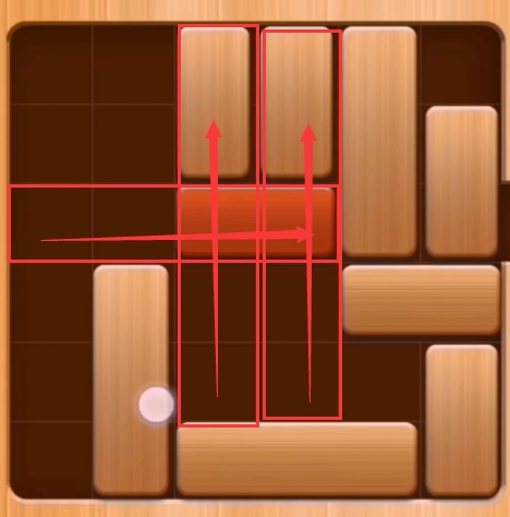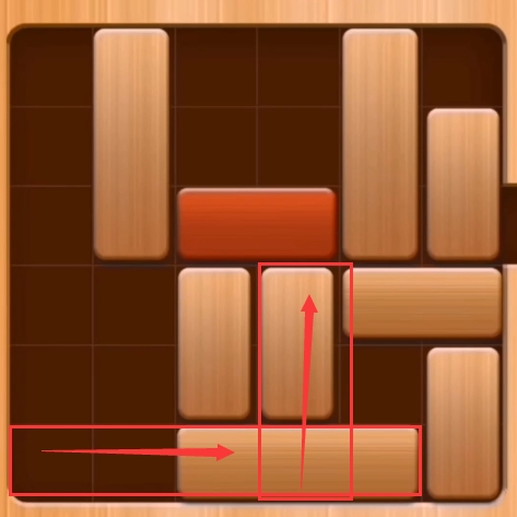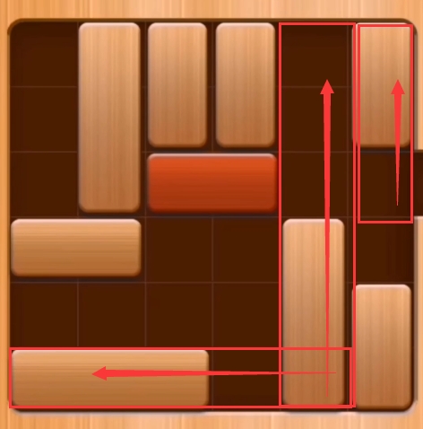 第四步:将第三列、第四列的积木均往上推并把红木往右边推: