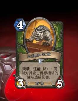 设计思路都有问题,强度肯定高不了。石缚加尔贡的垃圾身材导致它没触发注能时非常弱,对于猎人这种注重场面、节奏的职业来说,根本没法接受。即使触发了注能,它的垃圾身材导致它必须得准时打出才能有效解场,3点攻击力到了5费都不一定能解得动场了,除非配合猎人地标、山羊坐骑等卡牌增加攻击力,提高解场能力。