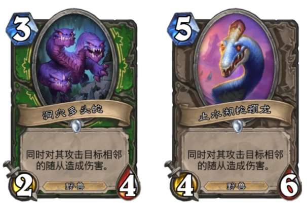 先不谈石缚加尔贡的强度,它的设计思路就离谱,炉石传说设计师居然还想着让猎人玩解场?俗话说了这么多年,“猎死解”还没够吗?解场倒也不是不行,攻击力好歹高一点,4费只有3点攻击力的突袭随从,不触发注能特效,好意思打出去吗?这波纯属是注能特效把身材给限制住了,多头蛇3费2-4身材,蛇颈龙5费4-6身材,石缚加尔贡夹在中间,只能是3-5身材了。