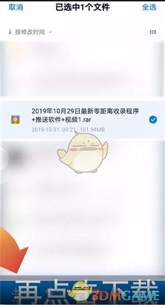 4、进入压缩包页面后即可找到刚刚下载的压缩包文件了,点击该文件再点击底端“解压至”,