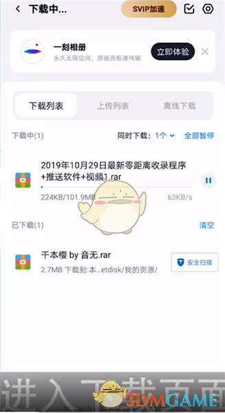 2、这时点击右上角传输列表,进入下载页面,等待文件下载完毕,