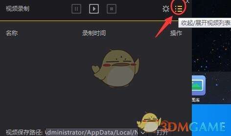 4、打开“视频录制”后会弹出一个菜单,点击录制菜单上的“设置”按钮可以看到视频录制的一些操作按键及基本设置;麦克风和游戏的声音都可以自己进行调节,