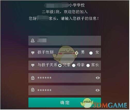 点击绑定孩子,填写您的基本信息,点击“确定”按钮完成绑定。
