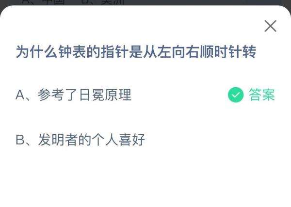 2022支付宝蚂蚁庄园7月29日的题目为:为什么钟表的指针是从左向右顺时针转?参考了日冕原理还是发明者的个人喜好?很多小伙伴可能还不太清楚正确答案是什么。下面小编就为大家带来了正确答案分享,感兴趣的小伙伴们快一起来看看吧!