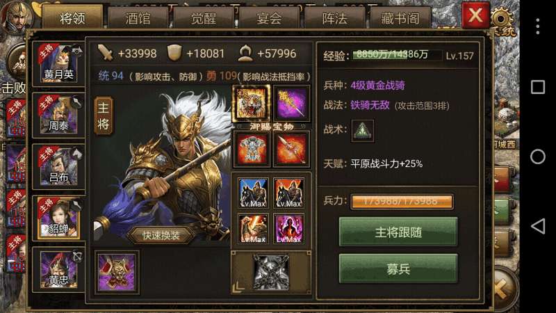 招募马超后,玩家需要花心思去培养他,通过提升等级、装备强化、技能升级等多种方式来增强马超的实力。意识到马超的优势主要在骑兵突击上,玩家可以根据实际情况和战略需要,调整兵法、搭配合适的武将来形成最佳的阵容组合。
