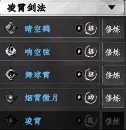 凌霄剑法乃天言学派剑法绝学,共有3个招式,1个功体,1个秘技。