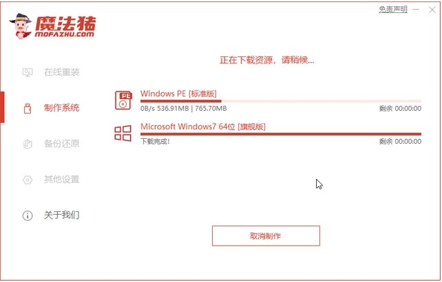 5、然后等待系统下载并成功制作U盘工具。然后拔出U盘并将其插入需要重新安装系统的计算机。