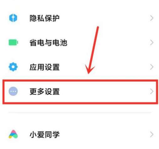 1、打开设置,点击更多设置。