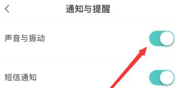 进入通知与提醒设置之后,可以看到“声音与振动”后面的按钮是打开的状态,关闭即可,如图所示。