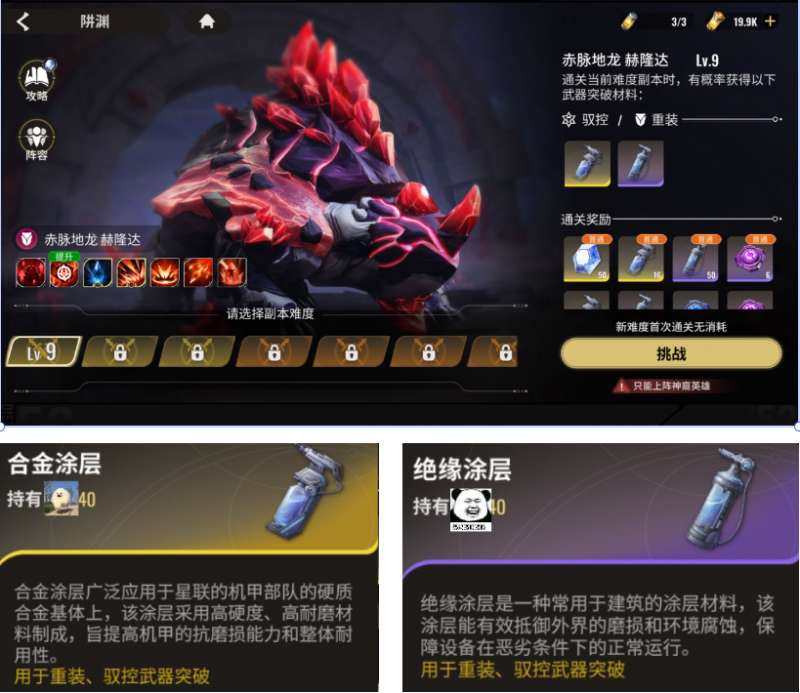 装备、英雄、英雄碎片获取:挑战