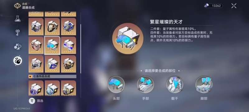 在手机图标里面可以找到【合成】的图标,这个图标点进去就是合成功能。遗器合成系统是一个重要的玩法,玩家可以通过合成获得更高级、更强大的遗器装备。遗器合成系统允许玩家将低级的遗器合成成高级的遗器,以提升遗器的属性和效果。通过合成,玩家可以将一些不再需要的遗器转化为更加有用的装备。崩坏3的遗器合成通常有两种类型:普通合成和反向合成。普通合成是将一定数量的低级遗器合成成一个高级遗器。合成后的高级遗器会拥有更高的属性和效果。反向合成允许玩家将高级遗器拆解成低级遗器或其他资源。这可以帮助玩家获取一些合成材料或回收不再需要的遗器,从而更好地管理资源。